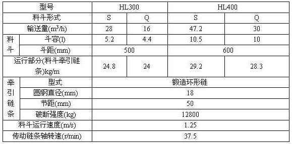 二、HL型斗式提升机主要技术参数::