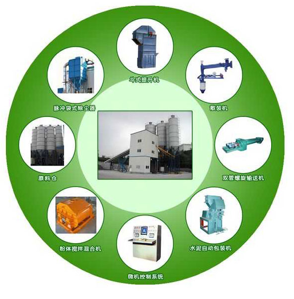 水泥生产线设备配置: 此生产线主要由原料仓、除尘器、输送机、提升机、高效混合搅拌机、包装机等组成。可根据用户生产要求进行合理配置,采用电脑自动配料装置,自动化程度高,简单方便,操作实用性强,成品既可包装也可散装,客户选择范围广。尤其是水泥厂旧线改造,可充分利用旧设备进行合理配置,既避免了有关设备的闲置浪费,又减少了投资成本,是广大水泥行业用户优先考虑的首选。