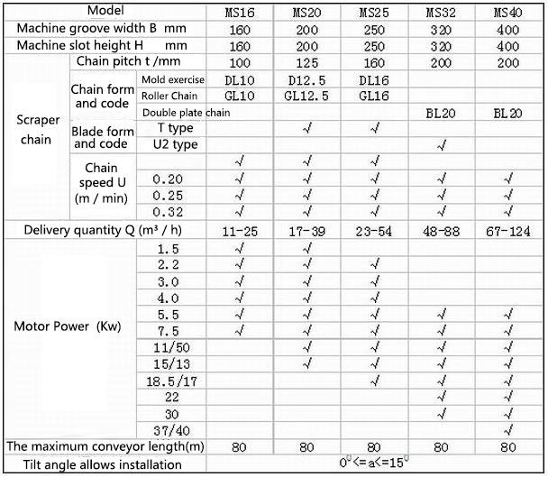 Second, buried scraper conveyor features: 1, buried scraper conveyor horizontal transport commonly used in particle and powder materials, can also make the tilt angle of delivery in the 150 range. Therefore, on the basis of a single point of access to materials, but also multi-point feed, multi-point discharge, to respect transportation of toxic, explosive, high-temperature materials and ease of flying, improve workers operating conditions and reduce environmental pollution, which are prominent features ʱ?? 2, buried scraper conveyor having a whole lifetime high, smooth operation, small structure size, low throughput, energy consumption, material breakage rate and other characteristics Third, what works scraper conveyor is? Scraper conveyor working principle is to open the chute, as coal, waste rock or materials such as bearing member, the blade is fixed to the chain (consisting of scraper chain), as the lead member. When the drive unit head start, drive sprocket nose axis of rotation, the blade chain driven cycle operation to move material along the chute, until the machine head unloaded. Scraper chain sprocket bypass for stepless closed loop operation, complete delivery of materials. Fourth, MS type buried scraper conveyor common models and technical parameters