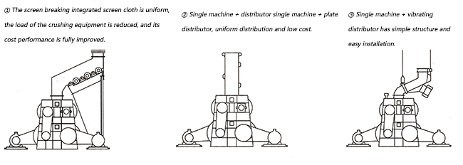 1、 Scope of application: When crushing materials, if the moisture content of the incoming materials is large, it is easy to block the crushing chamber, with low crushing efficiency, large vibration and fast wear. The discharging particle size cannot be guaranteed. If it is used to crush coal, the combustion efficiency will be reduced, and it is easy to cause coking at the bottom of the furnace chamber, which will affect the combustion effect of the boiler. In view of this phenomenon, we provide a screening and crushing machine. 2、 Operating principle: The equipment consists of screening distributor and crusher. The crusher is driven by two motors through a belt to make the work roll rotate in the opposite direction. After the materials enter through the feed port of the screening distributor, the materials meeting the particle size requirements are screened out from the screen roller, and the materials with large particle size are distributed on the screen roller and then enter the crusher. The teeth of the two rollers of the crusher are staggered with each other, making full use of the combination of cutting, splitting, pulling and pulling to crush the materials. At the same time, the materials are forced to roll continuously during the crushing process, Find the most vulnerable position for selective crushing to make the material reach the crushing particle size requirements. 3、 Main features: 1. the front screening distributor can effectively solve the eccentric wear problem of the rear crusher and ensure the discharge particle size. 2. compact structure and small installation space. 3. the single machine has high output, uniform particle size and adjustable crushing particle size., 4. the equipment is not sticky or blocked, and there is no requirement for the moisture of broken materials. 5. the toothed plate is dovetail toothed plate, which is fixed by the slider lock to realize the rapid assembly and disassembly of the toothed plate. 6. for the yielding mechanism of the crusher, the lever principle is used to increase the spring stiffness, and the spring group is lengthened at the same time, so that the single side flash back distance can reach 40-45 mm, which improves the hard object capacity of the whole machine, and the displacement adjustment is convenient. 7. the equipment has low vibration and noise, and no damping platform is required. The dynamic load is only 1.3 times of the static load, which has little impact on the building., 8. the humanized design facilitates the replacement of vulnerable parts and the frugal repair and maintenance of equipment. 9. the wind pressure difference at the inlet and outlet of the equipment is very small, which basically will not produce dust, so there is no need to install dust removal equipment. 4、 Configuration adjustable: Users can select according to their needs
